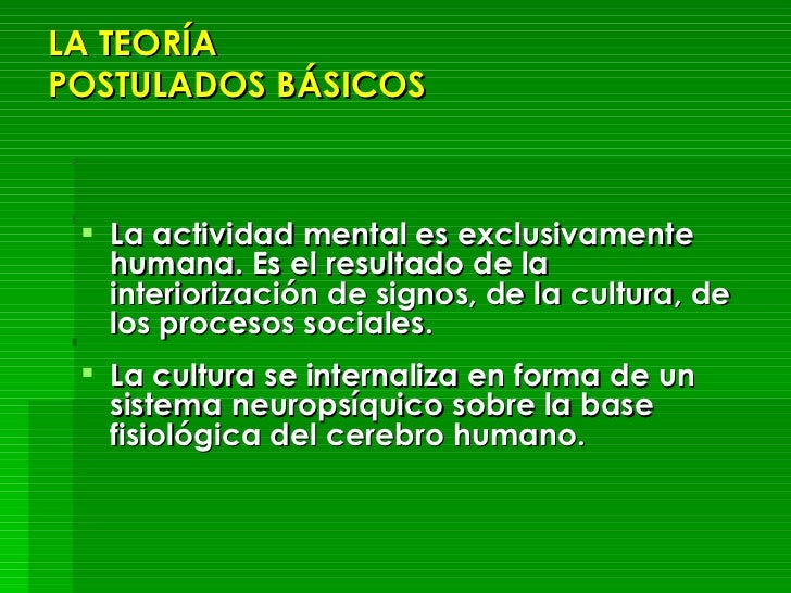 - La actividad mental es exclusivamente humana. Es el resultado de la interiorización de signos, de la cultura, de los procesos sociales.