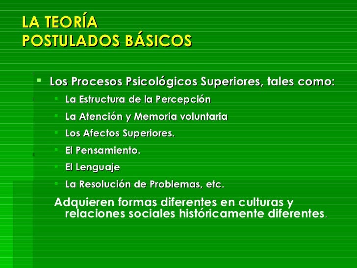 - Si los Procesos Psicológicos Superiores no son ni Universales, ni Inmutables ni Estáticos, su estructura cambiará según las modificaciones del modo de vida social, la presencia o ausencia de sistemas mediatizadores (como la escritura, el modo de razonamiento, etc.)