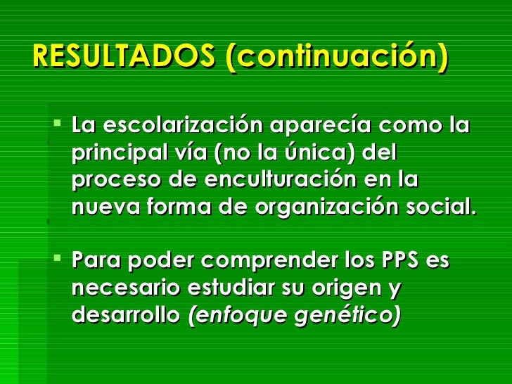 - Los PPS se forman durante el proceso de enculturación de los niños