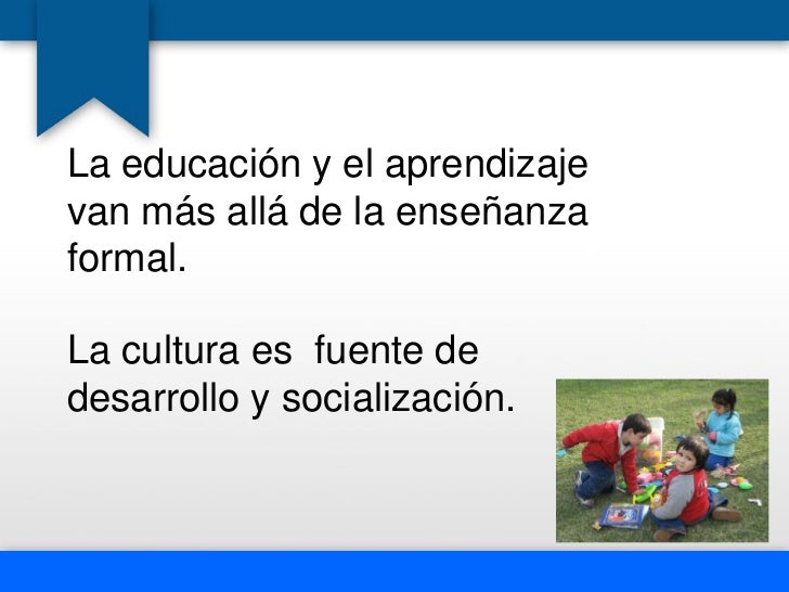 - 32. La educación y el aprendizajevan más allá de la enseñanzaformal.La cultura es fuente dedesarrollo y socialización.